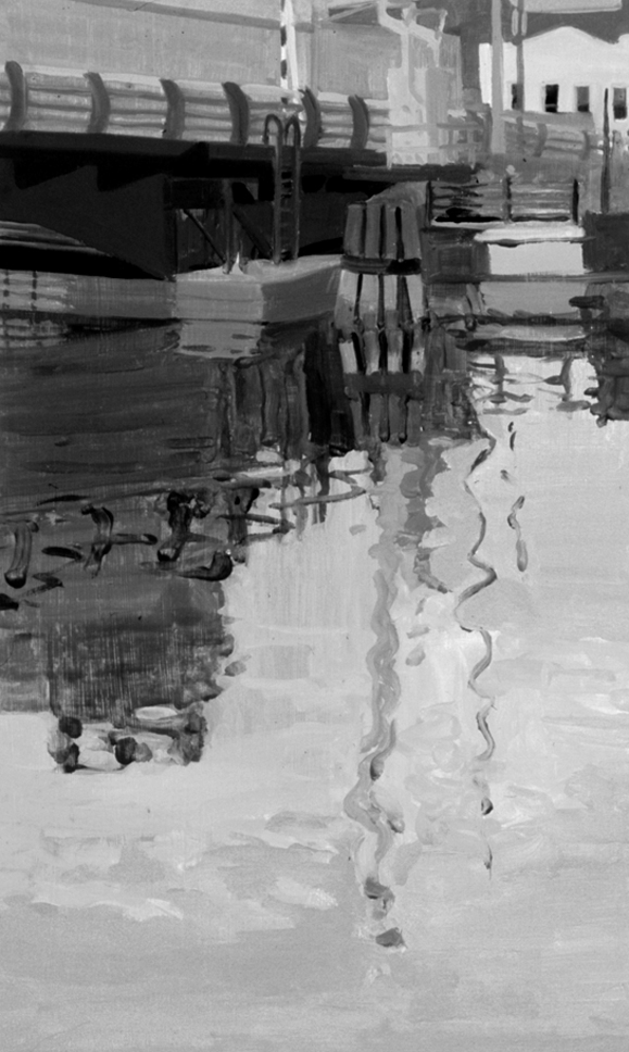 Undoubtedly there is an emotional connection between the artist, her subject matter, and her manner of representation. For O’Reilly, an initial emotional connection that frames her work may quickly become a concentrated exercise in formal concerns. This visual transformation is made manifest in some of her Irish paintings that refer to the concept of leaving Ireland, which are based both on her personal experience and those of the well documented waves of Irish leaving that continued through the 80s. “The fact that I’m an immigrant informs my work, I can see it in my choices as to what I paint, what draws me in and attracts me.”