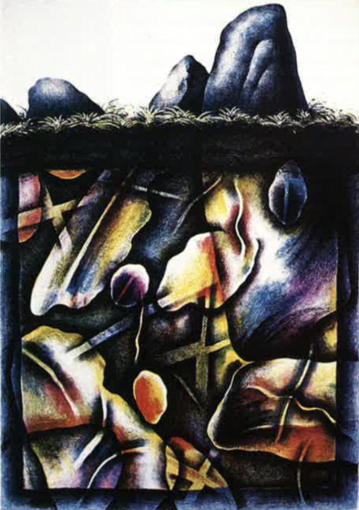 “I started playing with the idea of painting stones below the grass line which were more charged with color than the bluish-grey stones that appear above the grass. It opened up a whole new approach.”