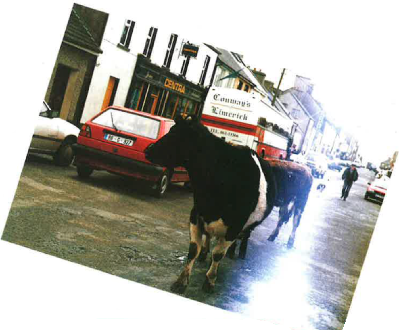 But the royal send-off came as the Americans began boarding the buses. Down the middle of the five-block long main street in Miltown Malbay, Peter Cleary, a local farmer, chased his two cows through the mist and waved good-bye. And the Americans and their new-found friends all broke out laughing, snapping final photographs, wiping the trace of tears, and giving each other one last hug.