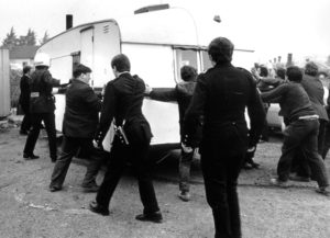 Police officers use force to remove Travellers from home.