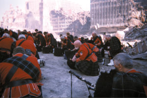 Members of the Fire Department Pipe and drum Band kneel to pay respect to Father Mychal Judge at their Ground Zero tribute. June 25, 2019 by Leave a Comment