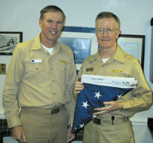 Admiral Fitzpatrick (left) with Captain McCarten aboard the USS Roosevelt proudly hold the flag that was raised by the firefighters at Ground Zero. The flag was signed by Mayor Giuliani and Governor Pataki. June 25, 2019 by Leave a Comment