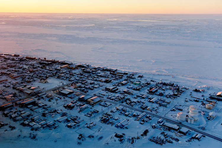 0212-NOME-AK-1087 February 18, 2015 by Leave a Comment Aerial view of the village of Nome, Alaska, and the ice-covered Bering Sea at sunrise. Copyright Carl Johnson