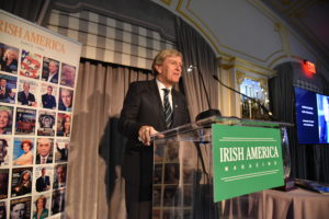 Ryan was awarded a House of Waterford Crystal Lismore Essence Vase Keynote Speaker Award from Irish America co-founder and editor-in-chief Patricia Harty and founding publisher Niall O’Dowd.