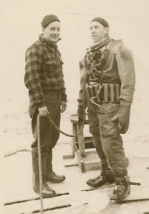 Patrick Killen tending to another diver, Jim McCamber, 1957.