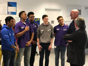 Paul O’Connell of the Irish rugby team (he received the most caps in Irish rugby history) talking to the All Hallows students. The other gentleman in the foreground is Seán Campbell, who is the head of Foróige.