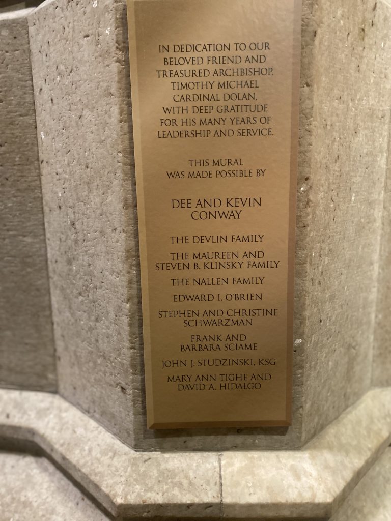 “The mural recognizes the contributions of a multigenerational host of great individuals and guardians of the city and pays tribute to the immigrants of many lands who continue to bring their faith and hope to New York,” Cardinal Dolan said.