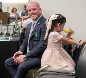 BOTTOM LEFT: IRELAND U.S. COUNCIL: Kevin Fegan (Taste Design) with Siobhan Mullen. CENTER: TOURISM IRELAND event at the Irish Art Center. L to R: Kevin O’Leary, producer of PBS series Samantha Brown’s Places to Love, Samantha Brown, Ruth Moran of Tourism Ireland, Garry Hynes, artistic director of Druid Theatre, and Mickela Mallozzi of Create TV show Bare Feet. RIGHT: THE EMERALD GUILD Kevin Forde (Emerald Guild Society board member) and his daughter Emersyn.