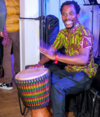 LEFT: THE NEW YORK IRISH CENTER: Africian drummer, Amos Gambos. RIGHT: The Ireland-U.S. Council Annual Meeting of Members and Directors was held before the Council’s 62nd Annual Dinner in the Metropolitan Club on November 13. (From left: back row): Executive Director David O’Sullivan, Billy Condon, Bill Byrne, Sean Mac Carthaigh, and Jim Normile. (From left: front row) Martin Murphy, Jim Adrian, Mary Hanlon, Council President Tom Higgins, and Martin Cottingham.