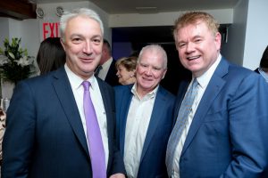TOP LEFT: THE EMERALD GUILD SOCIETY President John Keegan. CENTER: At the Ireland U.S. Council’s 62nd Annual Dinner were Ambassador Geraldine Byrne Nason, Ireland’s Ambassador to the United States; Bill McCluskey and Council President Tom Higgins. RIGHT: THE NEW YORK IRISH CENTER GALA: L to R: Consul General Gerald Angley, Board Chairman Sean Mackin, and George Heslin, CEO of NY Irish Center.