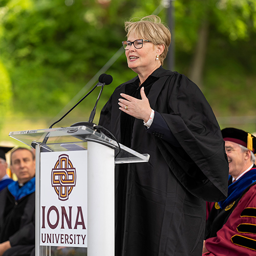 In May, 2023, she delivered the first commencement address following Iona’s transition from a college to a university. Speaking to the graduating class, Maggie had this to offer: