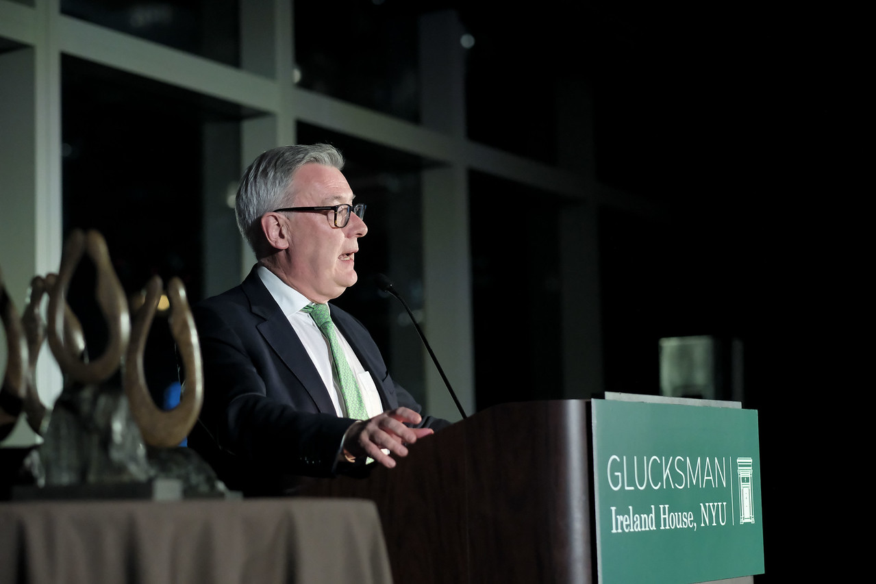 Among the distinguished guests gathered to honor this year’s Honorees were Ireland’s Ambassador to the United States Geraldine Byrne Nason; Loretta Brennan Glucksman Chair of the Advisory Board of Glucksman Ireland House; Fergal Mythen Ireland’s Permanent Representative to the UN; Richard Cushnie Director of the Northern Ireland Bureau; Sarah Jessica Parker award-winning actress and a member of the Booker Prize Committee chaired by Roddy Doyle; Consul General of Ireland Gerald Angley; Provost of NYU Georgina Dopico; 2025 winner of the Lewis L. Glucksman Award for Leadership Eileen Murray; CEO, Heineken USA and 2024 St. Patrick’s Day Parade Grand Marshal Maggie Timoney; and Andrea Haughian, Executive Vice President, Head of Americas in NY, Invest Northern Ireland.
