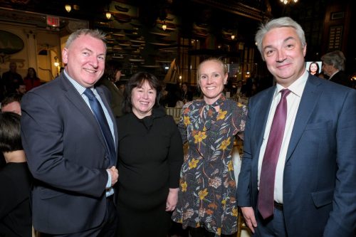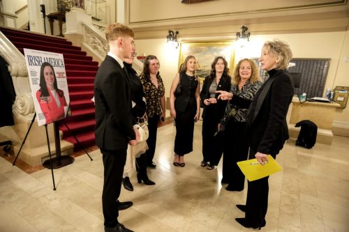 The honorees were joined by prominent members of the Irish American community at a gala dinner on October 27th at the New York Yacht Club. Included among the celebrants were Consul General Gerald Angley who congratulated the honorees, and the founders of Irish America magazine, Niall O’Dowd and Patricia Harty, and spoke of the many Irish firms now doing business in the U.S. Music was provided by Irish tenor Ciaran Sheehan (Phantom of the Opera star), and iconic folk singer Judy Collins, famous for both her music and her activism. Photographs by James Higgins. Video by Jimmy Gardner.