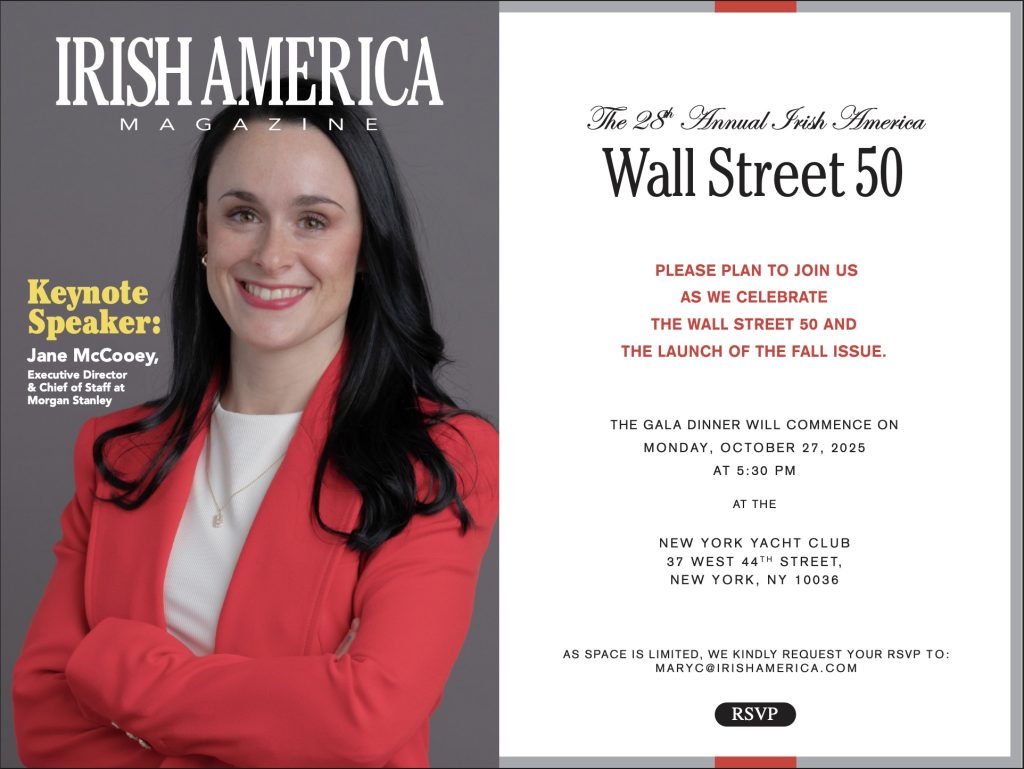 For decades now, Irish America has sought out and recognized the best and the brightest Irish-American and Irish-born leaders in the financial sphere for its Annual Wall Street 50, and this year was no exception. The fifty honorees are an extraordinary, inspiring, and diverse group – from standout rising stars to masterful Wall Street veterans – they represent many of the top financial firms in the world and show the global reach of the Irish.