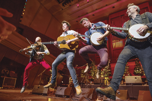 We Banjo 3 onstage. Left to right: Fergal Scahill, David Howley, Martin Howley, and Enda Scahill. March 13, 2019 by Leave a Comment